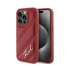 Karl Lagerfeld Diagonal Quilted Script - pouzdro pro iPhone 15 Pro (červené)