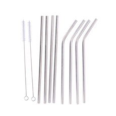 Alpina - ekologická kovová brčka pro opakované použití se sadou čisticích kartáčků (8+2 ks).)