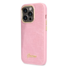 Guess Croco Collection - pouzdro pro iPhone 14 Pro (růžové)