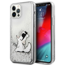 Karl Lagerfeld Liquid Glitter Choupette Fun - pouzdro pro iPhone 12 / iPhone 12 Pro (stříbrné)