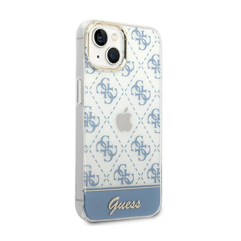 Guess 4G Stripe Script Logo Galvanizovaný vzor - pouzdro pro iPhone 14 Plus (modré)