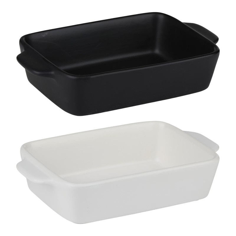 - Obdélníkový tvar: ideální pro zapékané pokrmy, lasagne, maso a zeleninu.