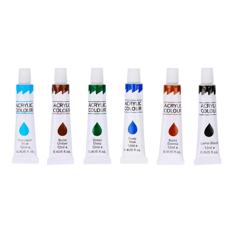 · 12 intenzivních akrylových barev, každá po 12 ml – trvanlivé, živé a krycí barvy.
