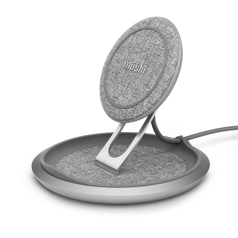 Bezdrátový nabíjecí stojan Moshi Lounge Q - bezdrátová indukční nabíječka Qi pro iPhone a Android 15 W (severská šedá)