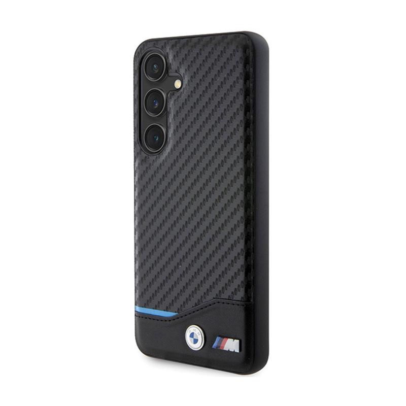 BMW Leather Carbon Blue Line - pouzdro pro Samsung Galaxy S24 (černé)