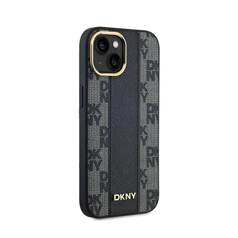 DKNY Leather Checkered Mono Pattern MagSafe - Pouzdro pro iPhone 14 / 15 / 13 (Černá)