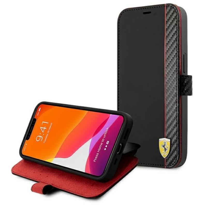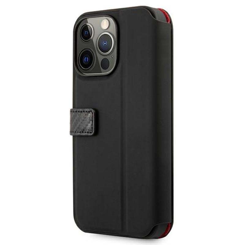 Ferrari Booktype On Track Carbon Stripe - pouzdro pro iPhone 13 Pro (černé)