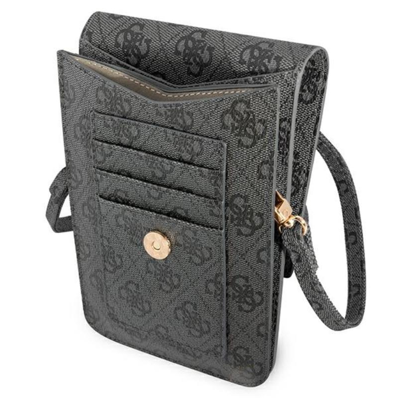 - Taška na telefon Guess 4G Big Metal Logo má dvě větší přihrádky a další čtyři menší kapsy na kreditní karty a doklady, hotovost a další drobné příslušenství, které pohodlně uspořádají dostupný prostor.