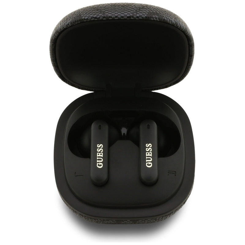 Guess 4G Classic Metal Logo - Bluetooth TWS ENC sluchátka + nabíjecí pouzdro (Černá)