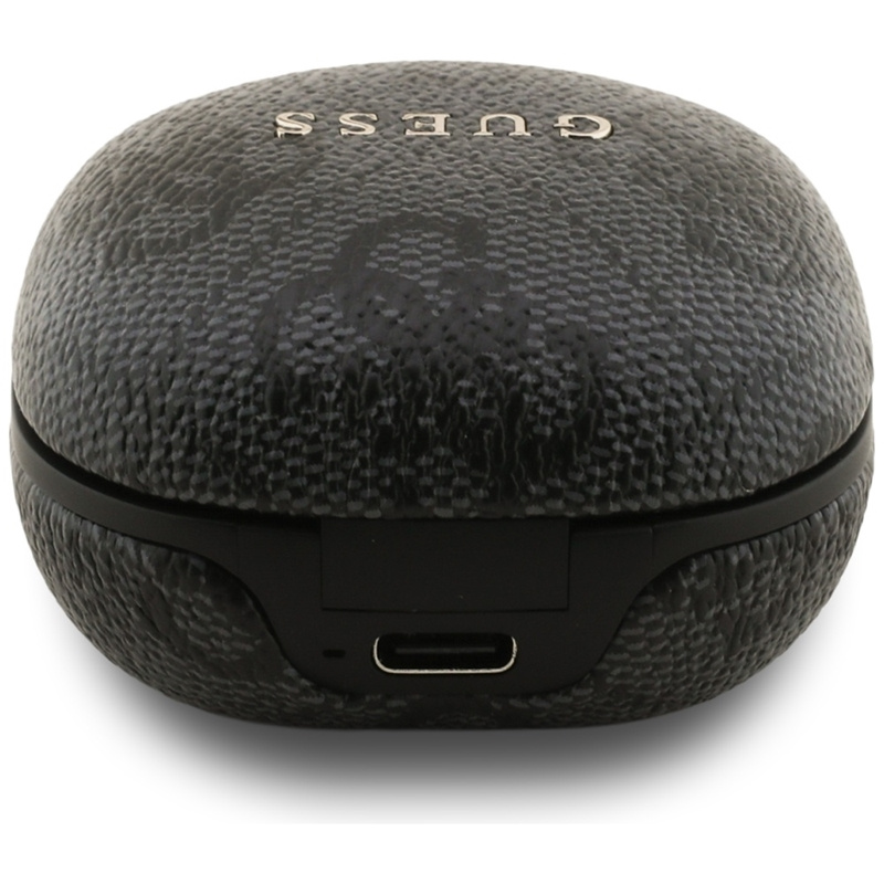 Logo Guess 4G Classic Metal je bezdrátové sluchátko do uší, které kombinuje moderní technologie s luxusním designem. Vyznačují se elegantním pouzdrem pokrytým ekologickou kůží s charakteristickým raženým 4G vzorem a kovovým logem Guess, což jim dodává prestižní charakter.