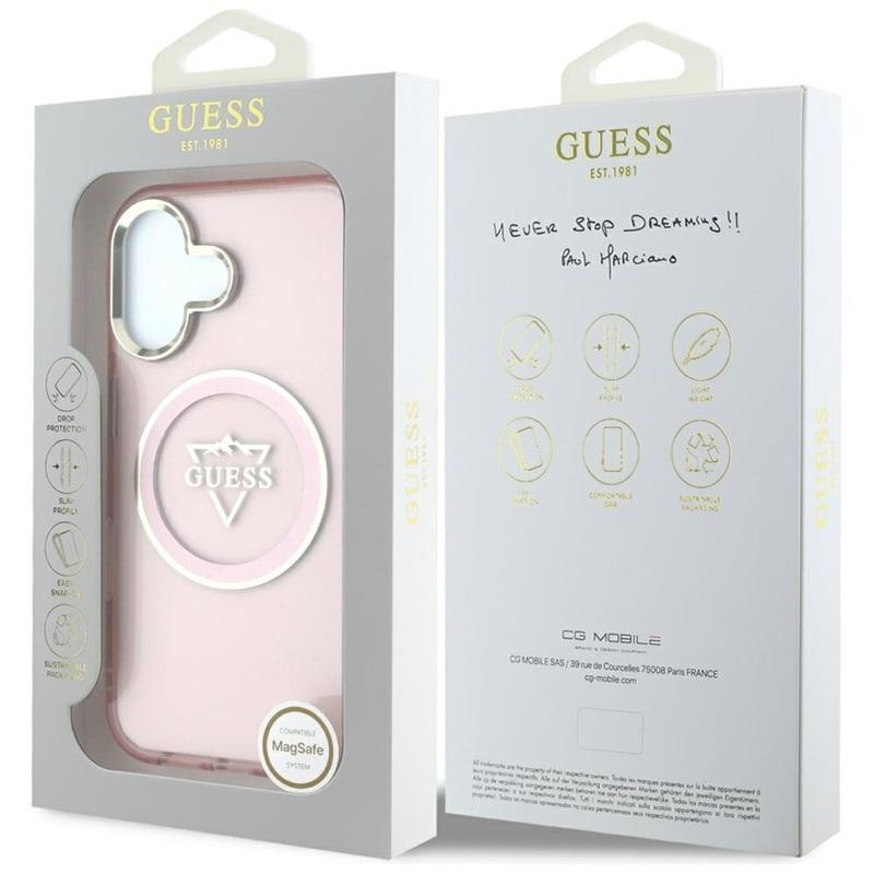 Guess IML Metal Mountain Logo MagSafe - Pouzdro pro iPhone 16 (růžové)