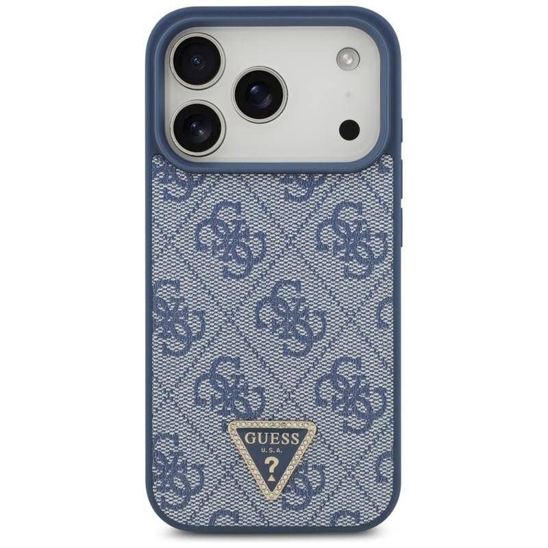 Guess Leather 4G Triangle Strass MagSafe - Pouzdro iPhone 17 Pro (Modrá)