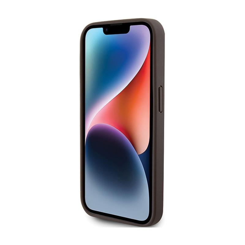 Guess Leather 4G Triangle Strass - oouzdro pro iPhone 15 Pro (hnědé)