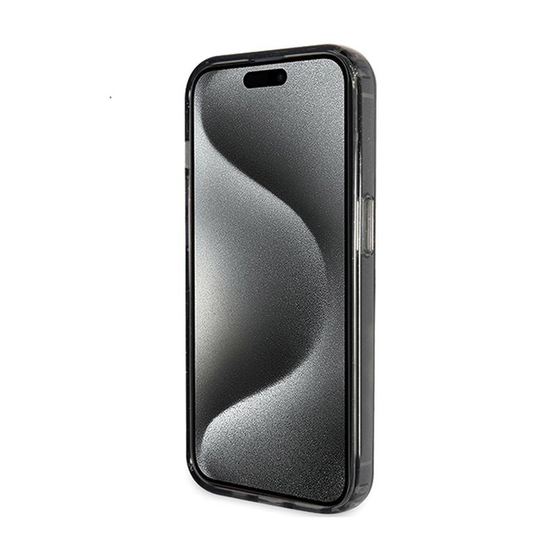 Guess Ring Stand Script Glitter MagSafe - pouzdro pro iPhone 15 Plus (černé)