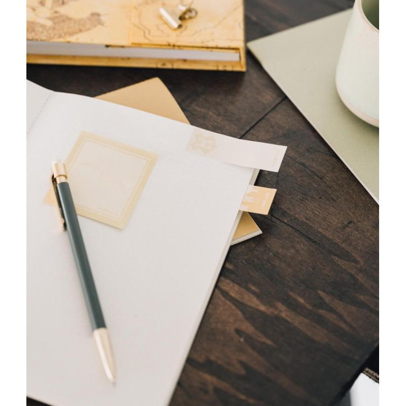 V zavřeném stavu měří 19,3 x 16,5 cm a po otevření se rozloží na působivých 50 x 16,5 cm. Uvnitř najdete týdenní blok, zápisník, tři samolepicí bloky a praktickou obálku na drobnosti. S tímto diářem si snadno spravujete své plány, poznámky a důležité informace na jednom místě.