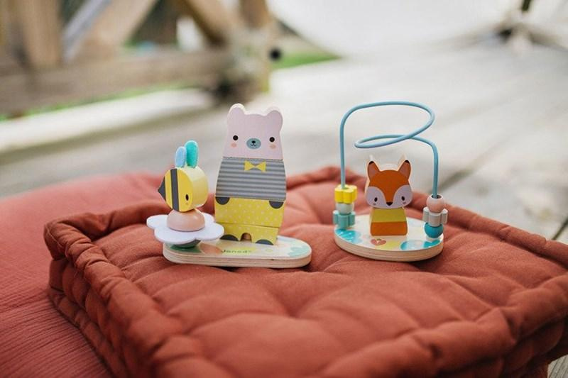 Jejími postavami jsou přátelská lesní zvířata - m.na adrese. lišku, medvěda nebo králíka. Každá hračka podporuje kognitivní potřeby a jemnou motoriku dítěte.