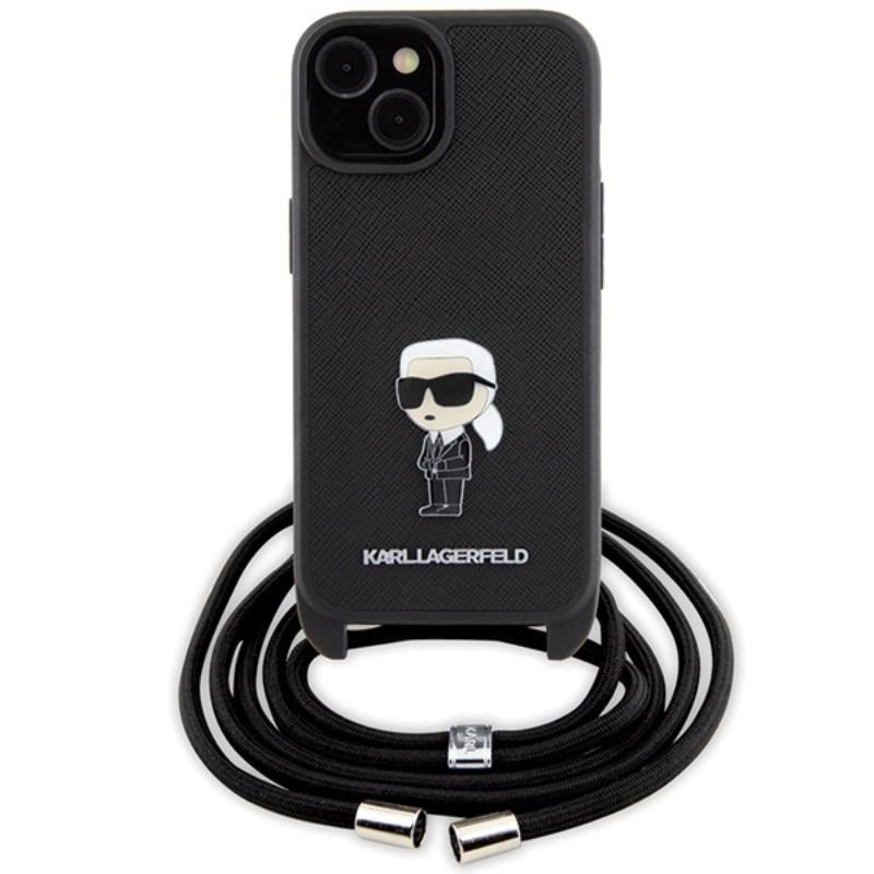 Karl Lagerfeld Crossbody Saffiano Monogram Ikonik Metal Pin - pouzdro pro iPhone 15 (černé)