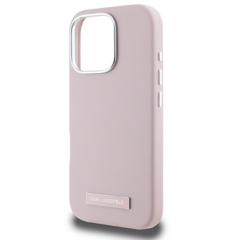Karl Lagerfeld FW Metal Plate MagSafe - Pouzdro pro iPhone 16 Pro (růžové)