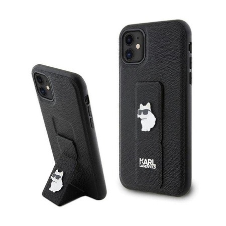 Karl Lagerfeld Gripstand Saffiano Choupette Pins - pouzdro pro iPhone 11 (černé)