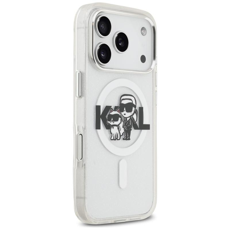 Karl Lagerfeld IML Glitter Karl & Choupette Sketch Logo MagSafe - Pouzdro pro iPhone 17 Pro (průhledné)