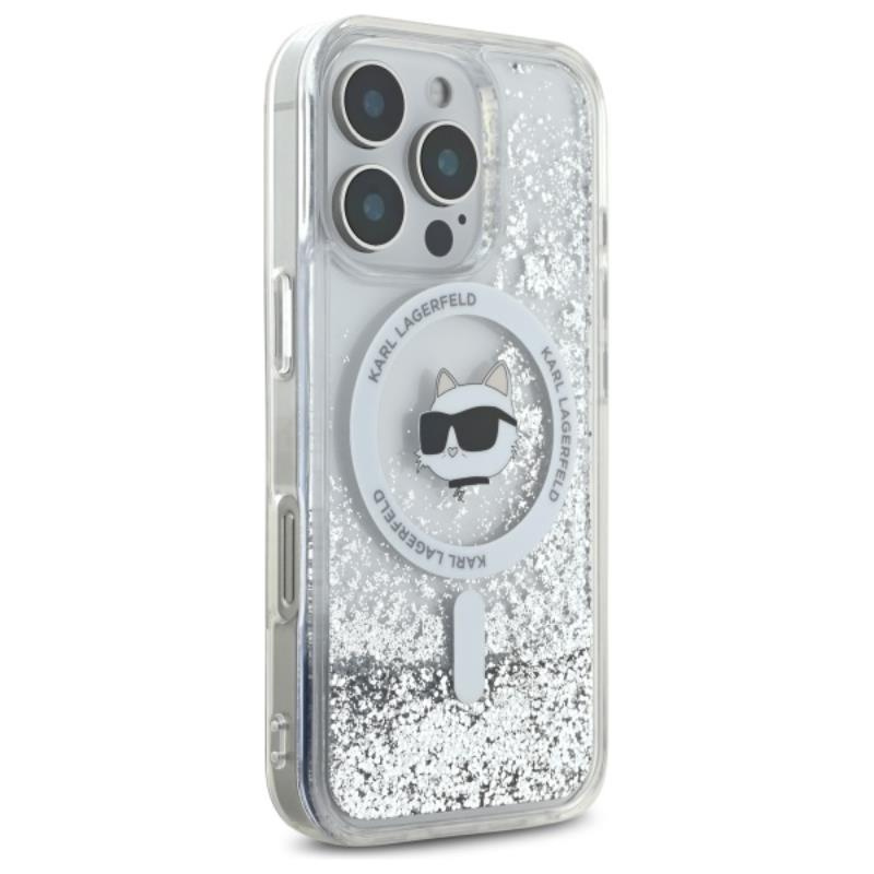 Karl Lagerfeld Liquid Glitter Choupette Head MagSafe - Pouzdro pro iPhone 16 Pro (průhledné)