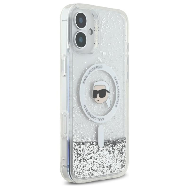 Karl Lagerfeld Liquid Glitter Karl Head MagSafe - Pouzdro pro iPhone 16 Plus (průhledné)