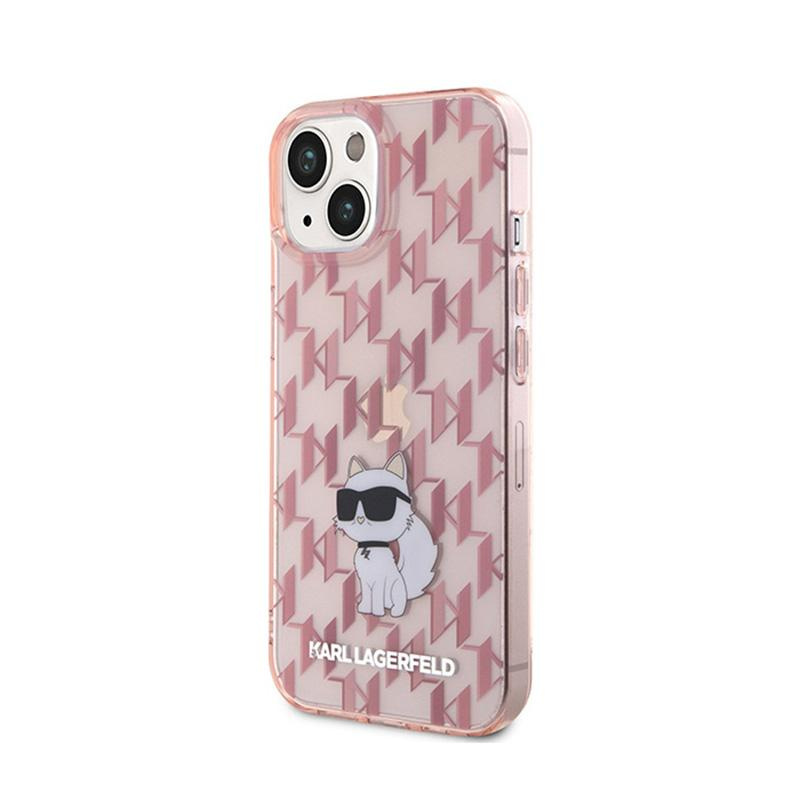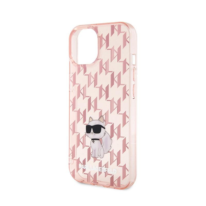 Karl Lagerfeld Monogram Choupette - pouzdro pro iPhone 15 (růžové)