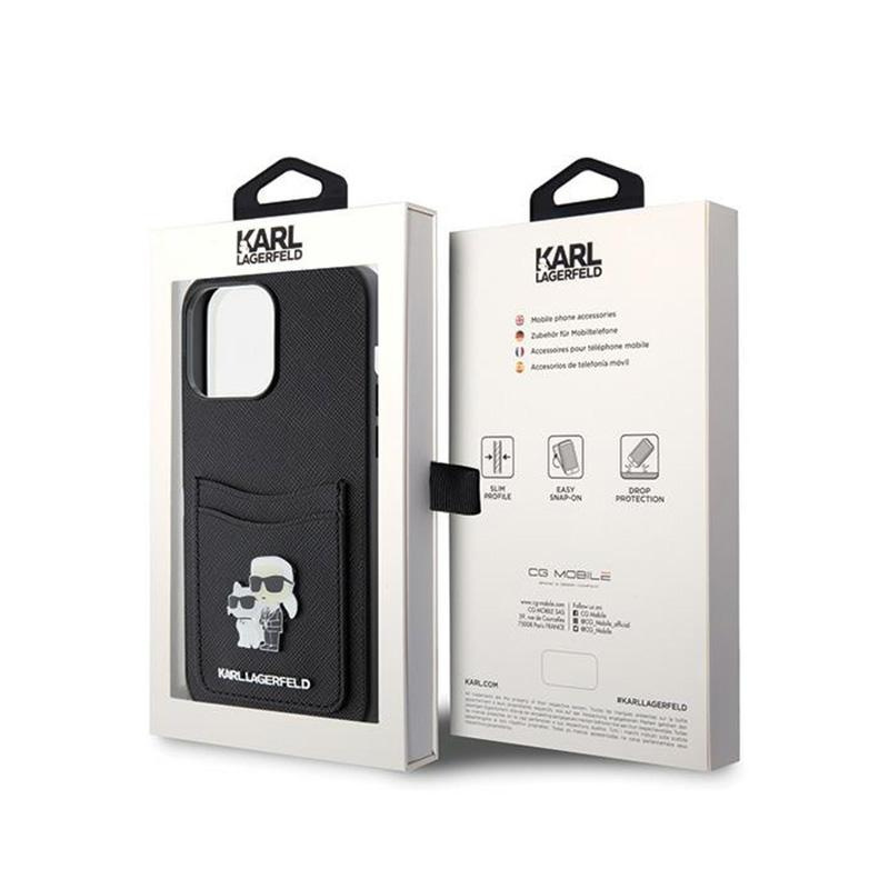 Karl Lagerfeld Saffiano Cardslot Karl & Choupette Metal Logo - pouzdro pro iPhone 15 Pro Max (černé)