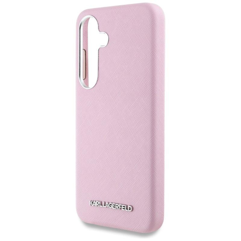 Karl Lagerfeld Saffiano Full Wrapped Elongated Metal Logo MagSafe - Pouzdro pro Samsung Galaxy S25+ (růžové)