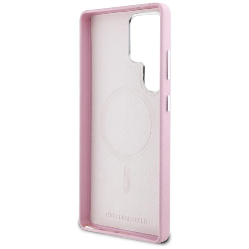 Karl Lagerfeld Saffiano Full Wrapped Elongated Metal Logo MagSafe - Pouzdro pro Samsung Galaxy S25 Ultra (růžové)