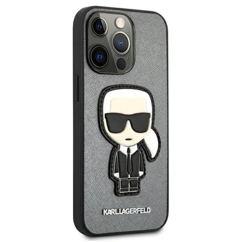Karl Lagerfeld Saffiano Ikonik Patch - pouzdro pro iPhone 13 Pro (stříbrné)