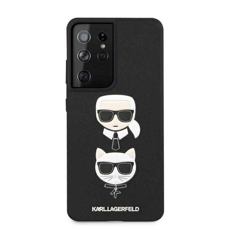 Karl Lagerfeld Saffiano Karl & Choupette Heads - pouzdro pro Samsung Galaxy S21 Ultra (černé)