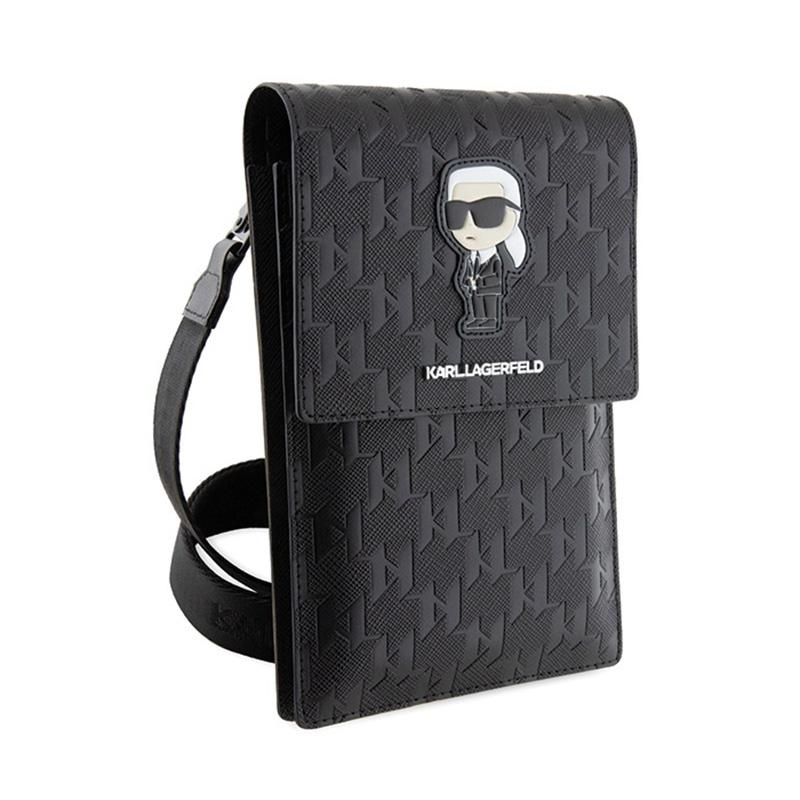 Karl Lagerfeld Saffiano Monogram Ikonik - Telefonní taška (černá)