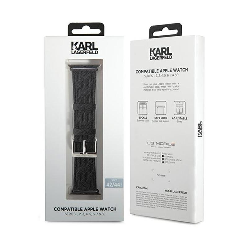 Karl Lagerfeld Saffiano Monogram - řemínek pro Apple Watch 42/44/45/49 mm (černý)