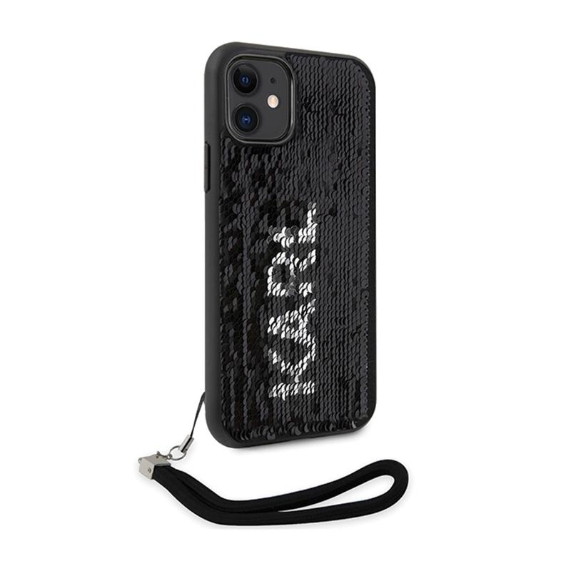 Karl Lagerfeld Sequins Cord - pouzdro se šňůrkou na iPhone 11 (stříbrné)