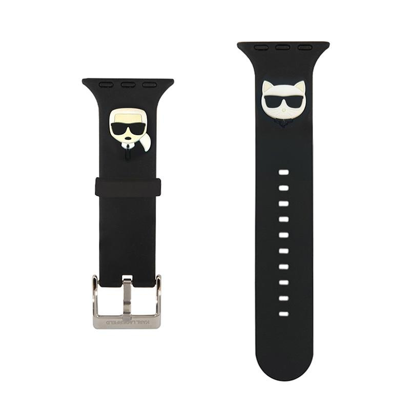 Karl Lagerfeld Silikonový řemínek Karl & Choupette Heads pro Apple Watch 42/44/45 mm (černý)