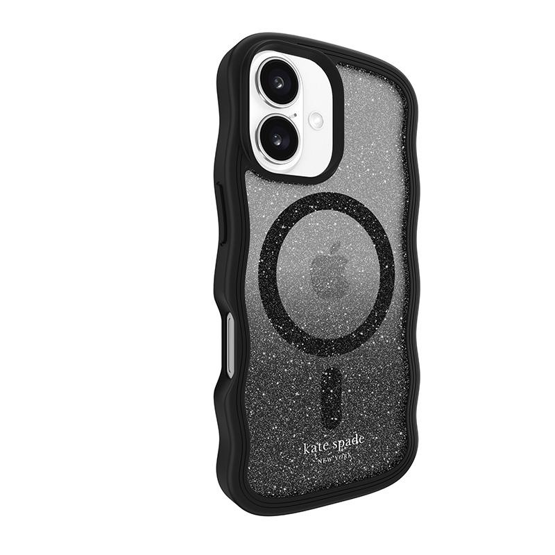 - Pouzdro Kate Spade New York Wavy MagSafe pro iPhone 16 je stylovou kombinací funkčnosti a módního designu. Jeho jedinečný zvlněný design pokrytý elegantním černým brokátovým ombre dodává telefonu jedinečný vzhled, který je ideální pro p