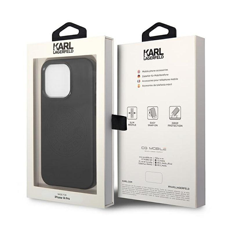 Kožené perforované pouzdro s logem Karl Lagerfeld - pouzdro pro iPhone 14 Pro (černé)