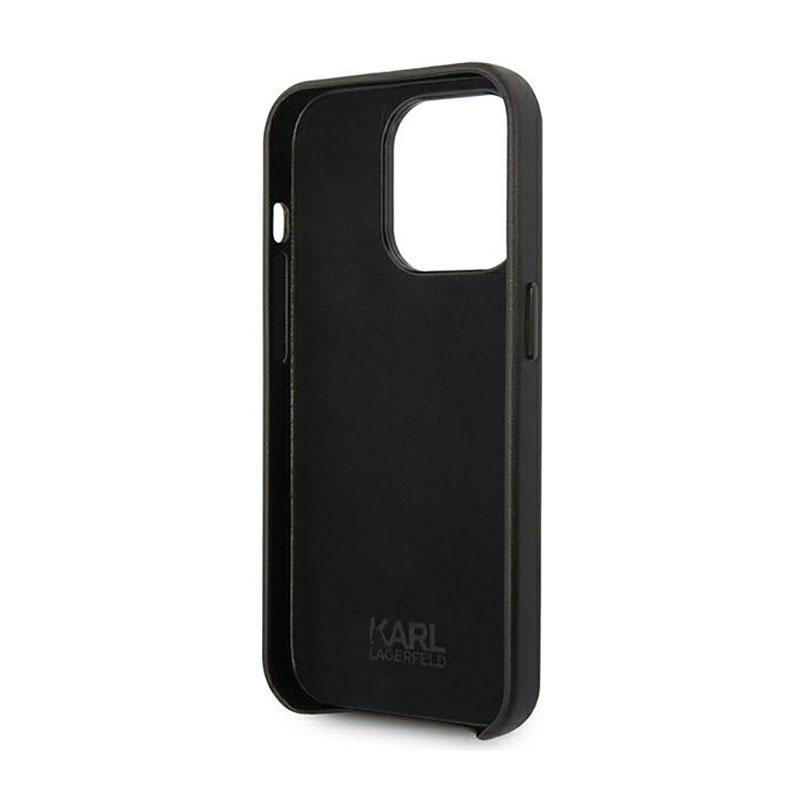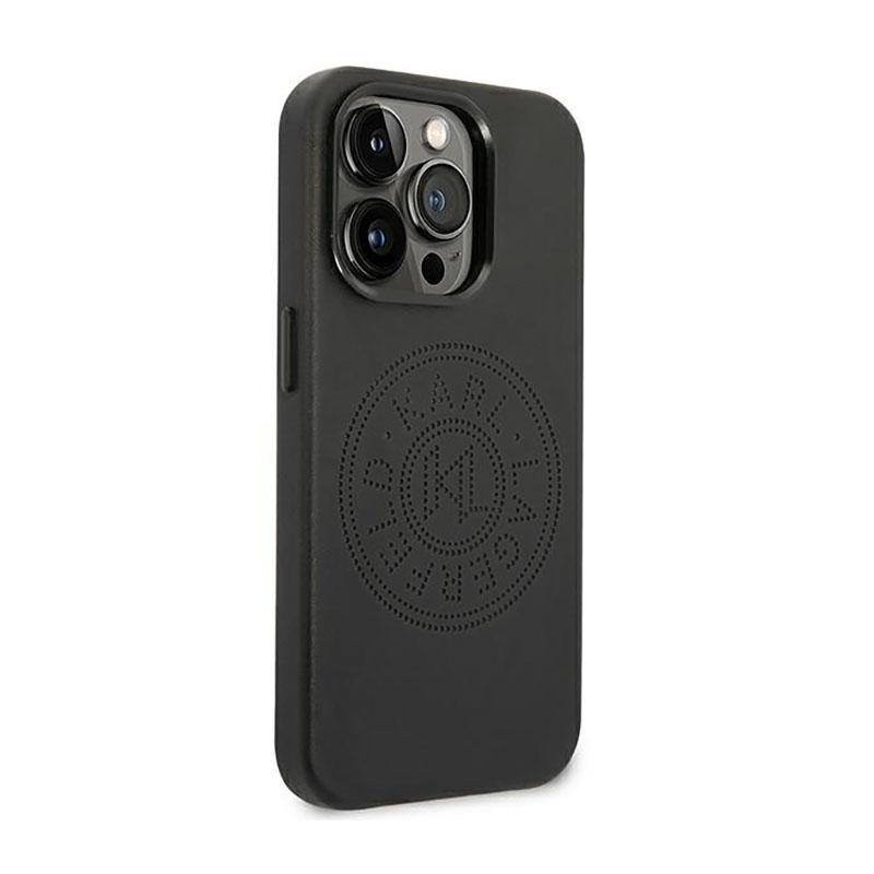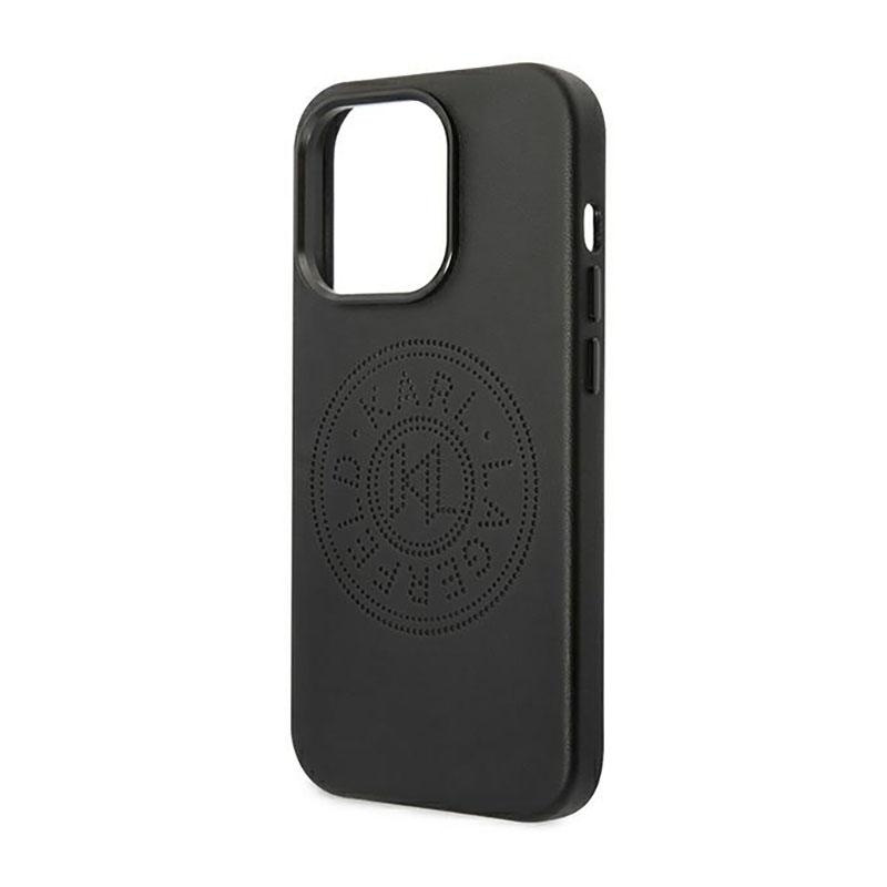 Kožené perforované pouzdro s logem Karl Lagerfeld - pouzdro pro iPhone 14 Pro Max (černé)