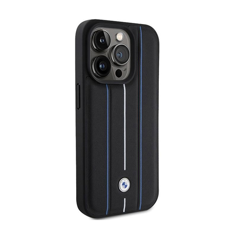 Kožené pouzdro BMW Stamp Blue Lines - iPhone 15 Pro Max (černé)