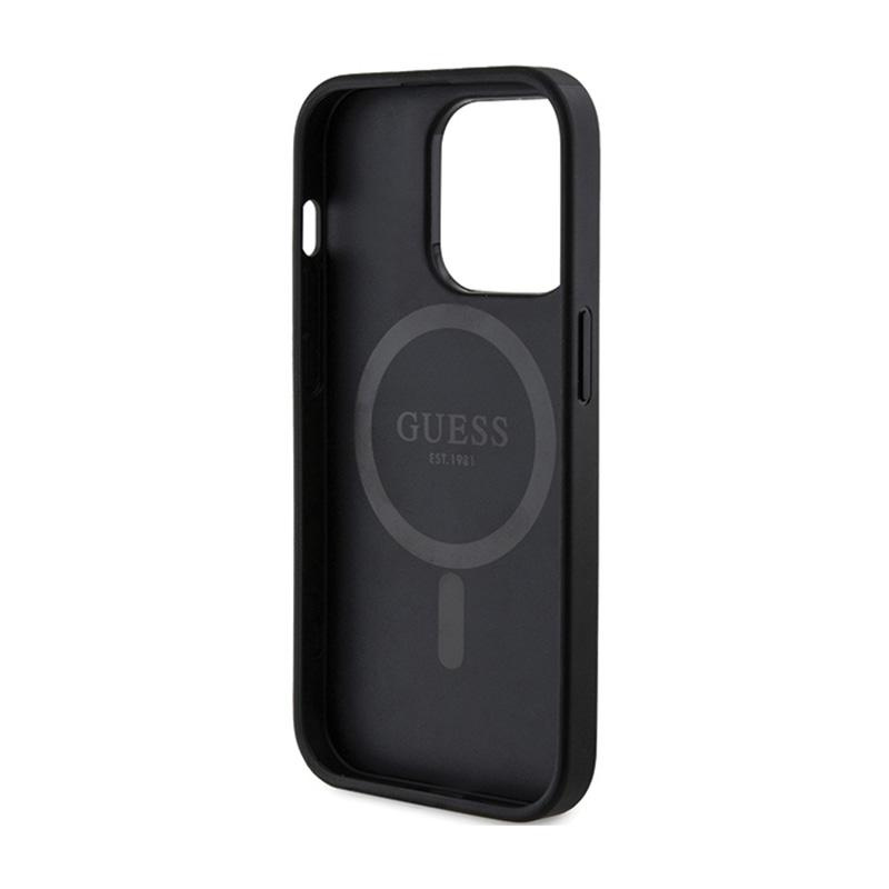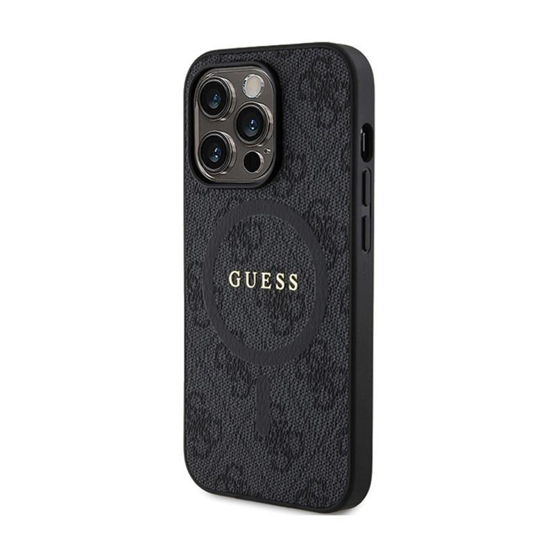 Kožené pouzdro Guess 4G Collection Metal Logo MagSafe - iPhone 15 Pro Max (černé)