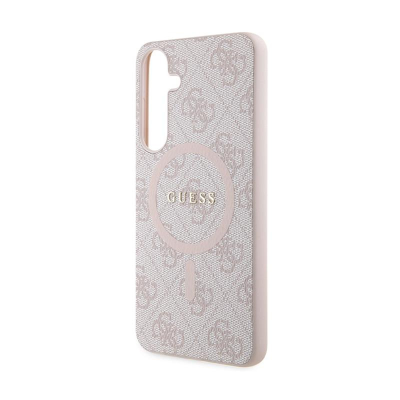 Kožené pouzdro Guess 4G Collection Metal Logo MagSafe - Samsung Galaxy S24+ (růžové)