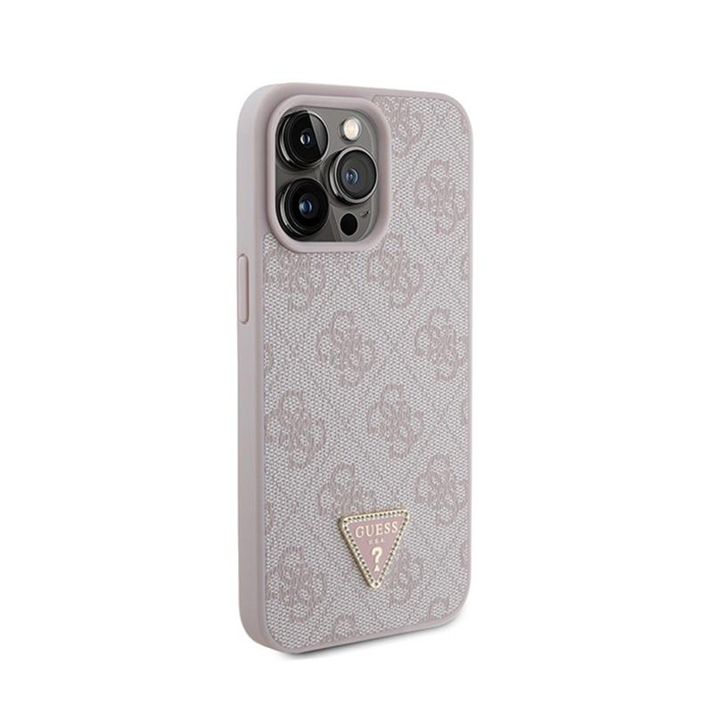 Kožené pouzdro Guess 4G Triangle Strass - iPhone 15 Pro Max (růžové)