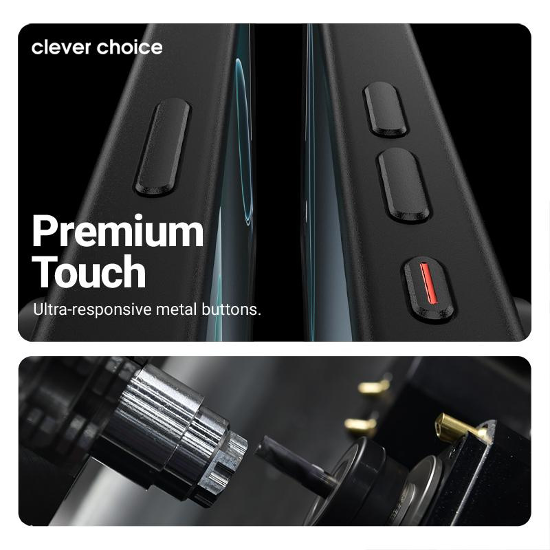 Kryt Hybrid Frost MAG Cover je také vybaven přesnými hliníkovými tlačítky pro pohodlné používání všech funkcí telefonu. Zvýšený okraj displeje umožňuje bezpečné umístění iPhonu displejem dolů a zvýšený rámeček kolem fotoaparátu chrání zadní kameru.