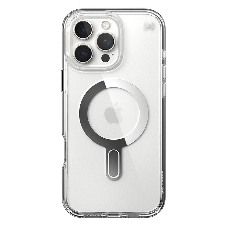 Kryt Speck Presidio Perfect-Clear ClickLock & MagSafe pro iPhone 16 Pro Max (průhledný / chromovaný / klidně stříbrný)