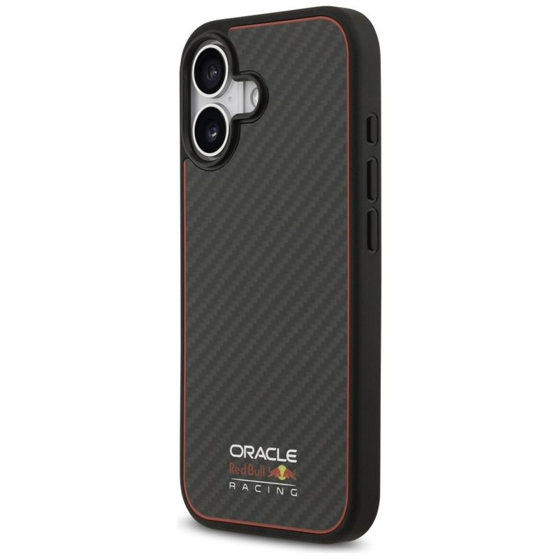 Dynamický styl pouzdra je zdůrazněn výraznou červenou linií podél okrajů a černým rámečkem a tlačítky fotoaparátu, které vytvářejí ucelenou a expresivní kompozici. Ikonické logo Oracle Red Bull Racing dotváří vzhled a potvrzuje autenticitu produktu a nejvyšší kvalitu zpracování.