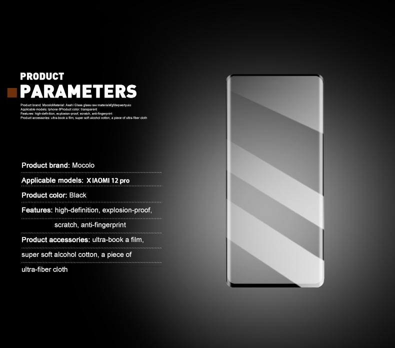 Mocolo 3D 9H Full Glue - Celoplošné ochranné sklo pro Xiaomi 12 Pro (Black)