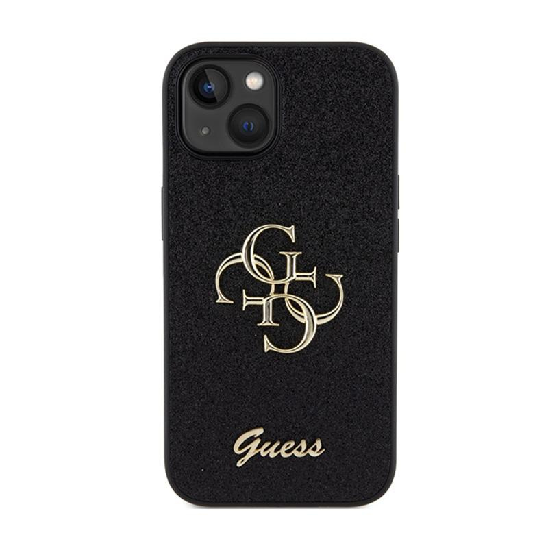 Pouzdro Guess Glitter Script Big 4G - iPhone 15 Plus (černé)