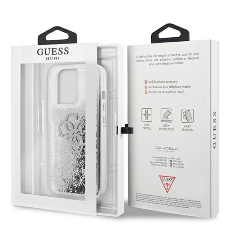 Pouzdro Guess Liquid Glitter 4G Big Logo - iPhone 13 Pro (stříbrné)