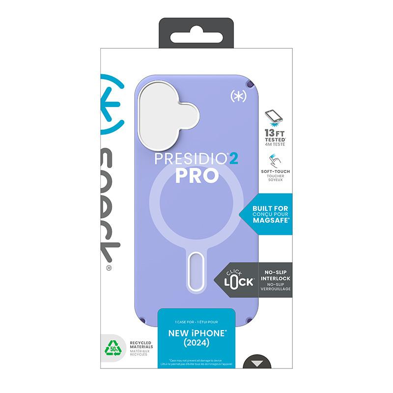 Pouzdro Speck Presidio2 Pro ClickLock & MagSafe - iPhone 16 (Future Lavender / Cassis Purple / White)